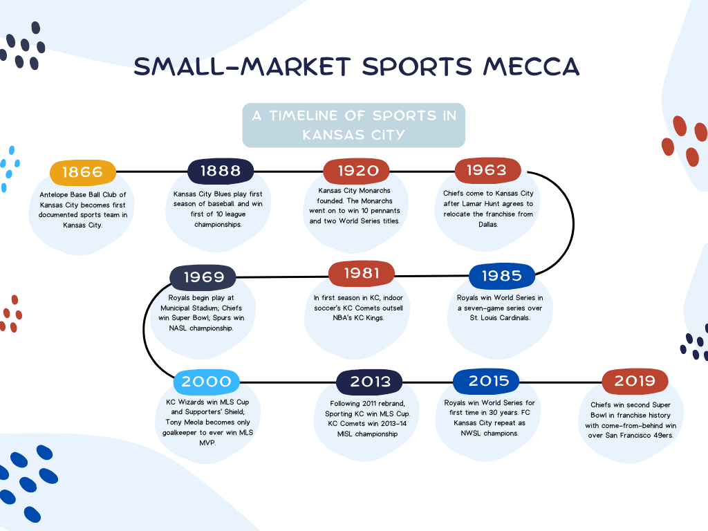 Kansas City started out with humble roots before developing into a small-market sports mecca. Over a century and a half of history has brought some of the greatest championships, athletes, coaches and executives as well as passionate fan bases and countless memories to America’s heartland.